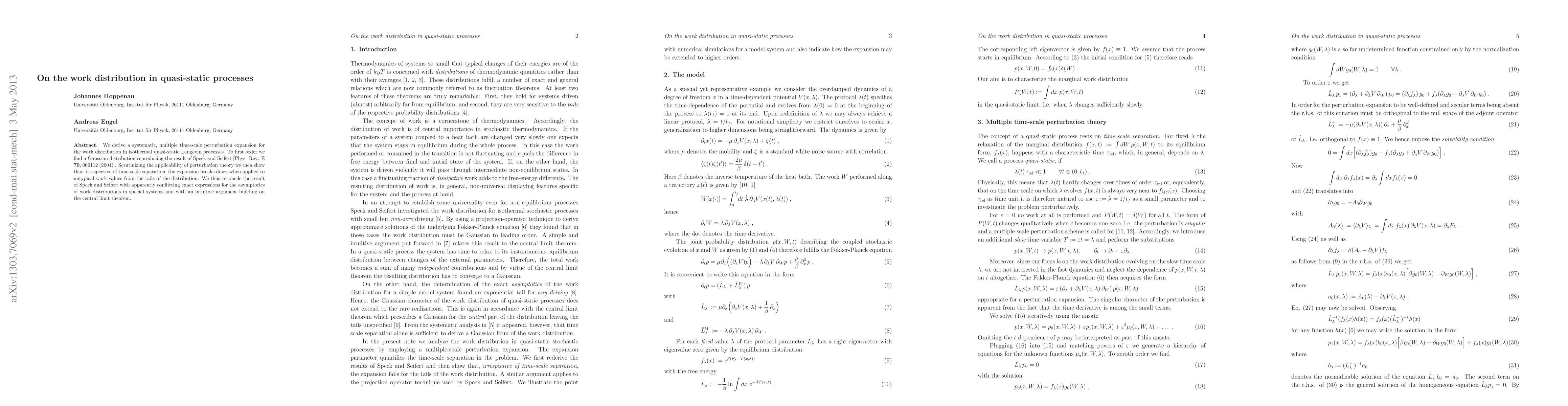 Researchers develop a new method to analyze work distribution in quasi-static processes, confirming an existing result for typical work values but showing it breaks down at extreme limits.