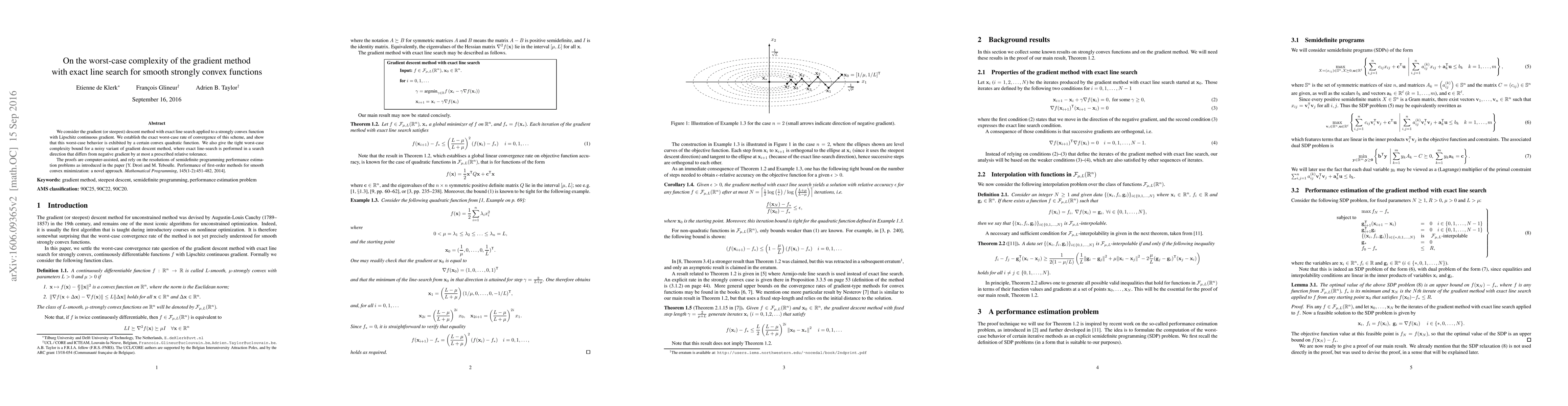 This paper establishes the exact worst-case convergence rate of the gradient descent method with exact line search for smooth strongly convex functions, demonstrating its behavior through a specific convex quadratic function. It also provides a tight complexity bound for a noisy variant of gradient descent, relying on computer-assisted proofs and semidefinite programming.