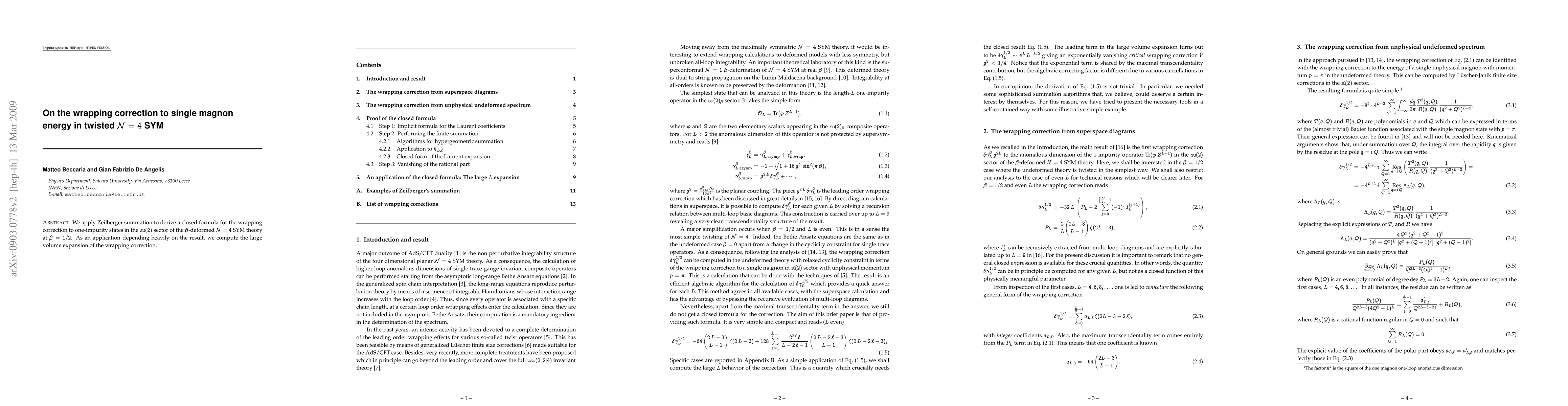 We apply Zeilberger summation to derive a closed formula for the wrapping correction to one-impurity states in the su(2) sector of the beta-deformed N=4 SYM theory at beta=1/2. As an application depending heavily on the result, we compute the large volume expansion of the wrapping correction.