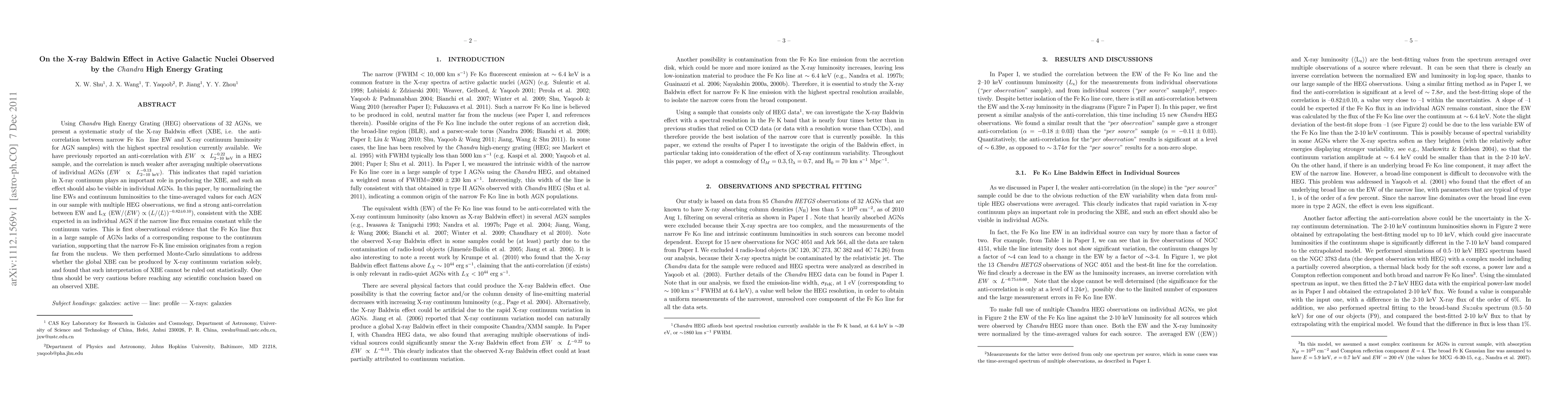 previously reported an anti-correlation with EW\proptoL(2-10 keV)^-0.22 in a