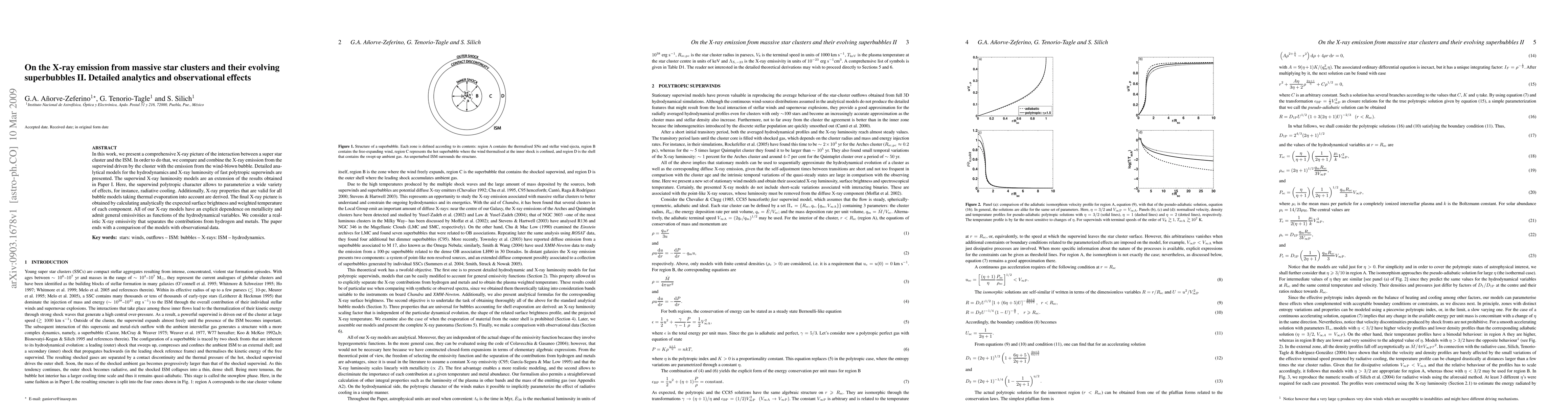 In this work, we present a comprehensive X-ray picture of the interaction between a super star cluster and the ISM. In order to do that, we compare and combine the X-ray emission from the superwind driven by the cluster with the emission from the wind-blown bubble. Detailed analytical models for the hydrodynamics and X-ray luminosity of fast polytropic superwinds are presented. The superwind X-ray luminosity models are an extension of the results obtained in Paper I of this series. Here, the superwind polytropic character allows to parameterize a wide variety of effects, for instance, radiative cooling. Additionally, X-ray properties that are valid for all bubble models taking thermal evaporation into account are derived. The final X-ray picture is obtained by calculating analytically the expected surface brightness and weighted temperature of each component. All of our X-ray models have an explicit dependence on metallicity and admit general emissivities as functions of the hydrodynamical variables. We consider a realistic X-ray emissivity that separates the contributions from hydrogen and metals. The paper ends with a comparison of the models with observational data.