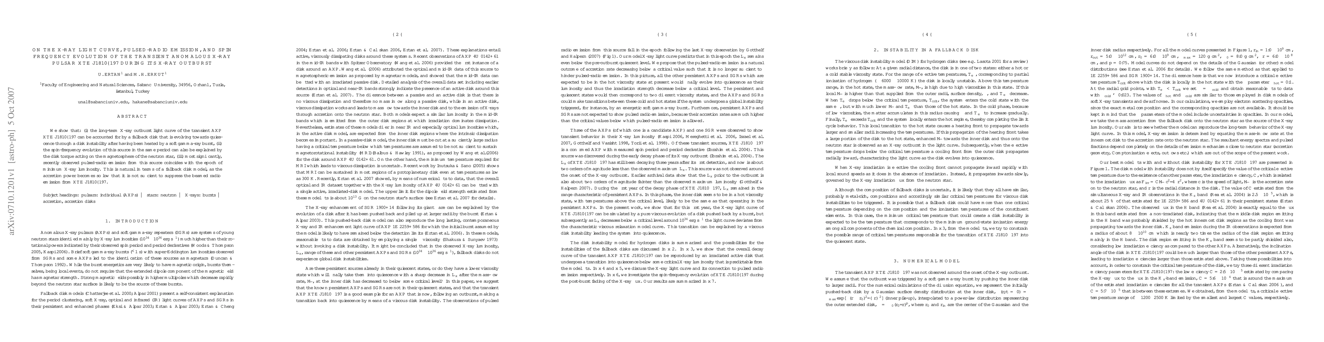 We show that: (i) the long-term X-ray outburst light curve of the transient AXP XTE J1810-197 can be accounted for by a fallback disk that is evolving towards quiescence through a disk instability after having been heated by a soft gamma-ray burst, (ii) the spin-frequency evolution of this source in the same period can also be explained by the disk torque acting on the magnetosphere of the neutron star, (iii) most significantly, recently observed pulsed-radio emission from this source coincides with the epoch of minimum X-ray luminosity. This is natural in terms of a fallback disk model, as the accretion power becomes so low that it is not sufficient to suppress the beamed radio emission from XTE J1810-197.