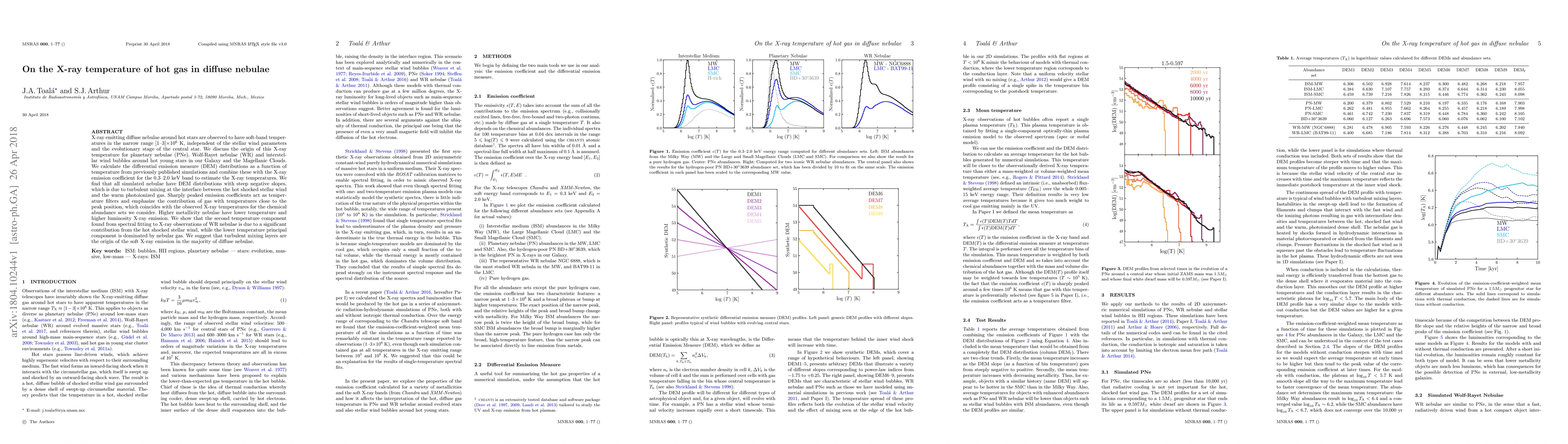 This paper investigates the consistent X-ray temperatures in diffuse nebulae around hot stars, attributing the observed range to turbulent mixing at the interface between shocked stellar winds and photoionized gas. The study finds that the soft X-ray emission is primarily due to turbulent mixing layers, with higher metallicity leading to lower temperatures and higher luminosity.