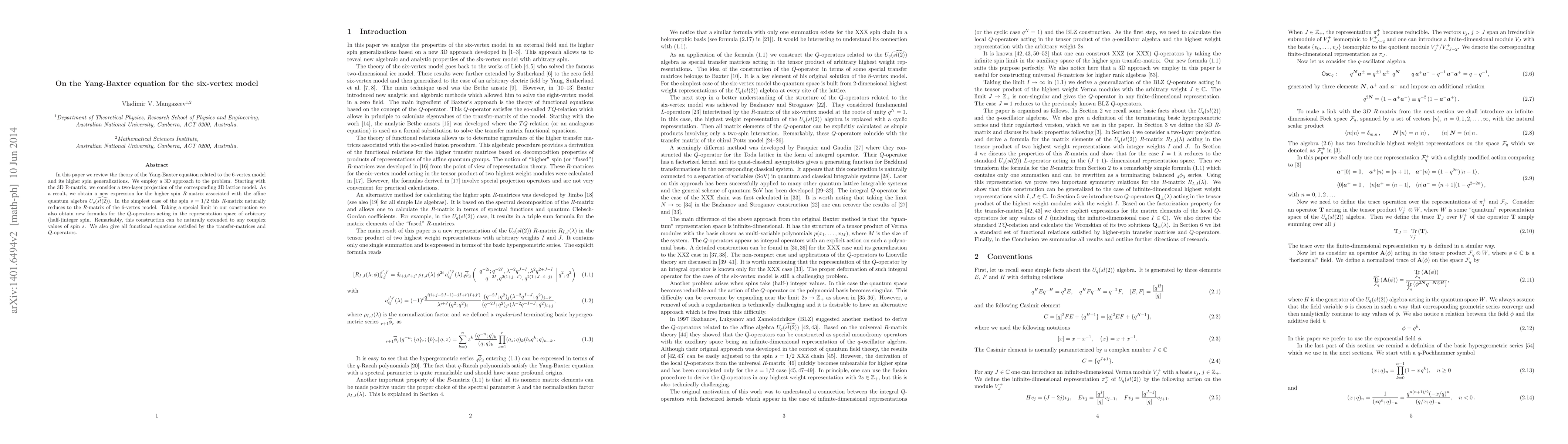 This paper reviews the Yang-Baxter equation in the context of the 6-vertex model and its higher spin generalizations, employing a 3D approach to derive a new expression for the higher spin $R$-matrix associated with $U_q(\widehat{sl(2)})$. The construction also yields new formulas for $Q$-operators for arbitrary spin and provides functional equations for transfer-matrices and $Q$-operators.