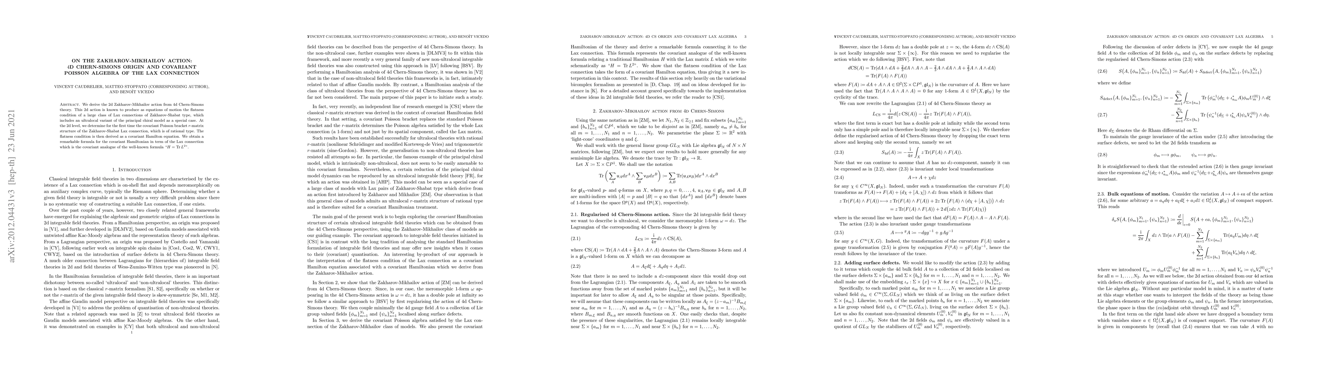 We derive the $2$d Zakharov-Mikhailov action from $4$d Chern-Simons theory. This $2$d action is known to produce as equations of motion the flatness condition of a large class of Lax connections of Zakharov-Shabat type, which includes an ultralocal variant of the principal chiral model as a special case. At the $2$d level, we determine for the first time the covariant Poisson bracket $r$-matrix structure of the Zakharov-Shabat Lax connection, which is of rational type. The flatness condition is then derived as a covariant Hamilton equation. We obtain a remarkable formula for the covariant Hamiltonian in term of the Lax connection which is the covariant analogue of the well-known formula "$H=Tr L^2$".