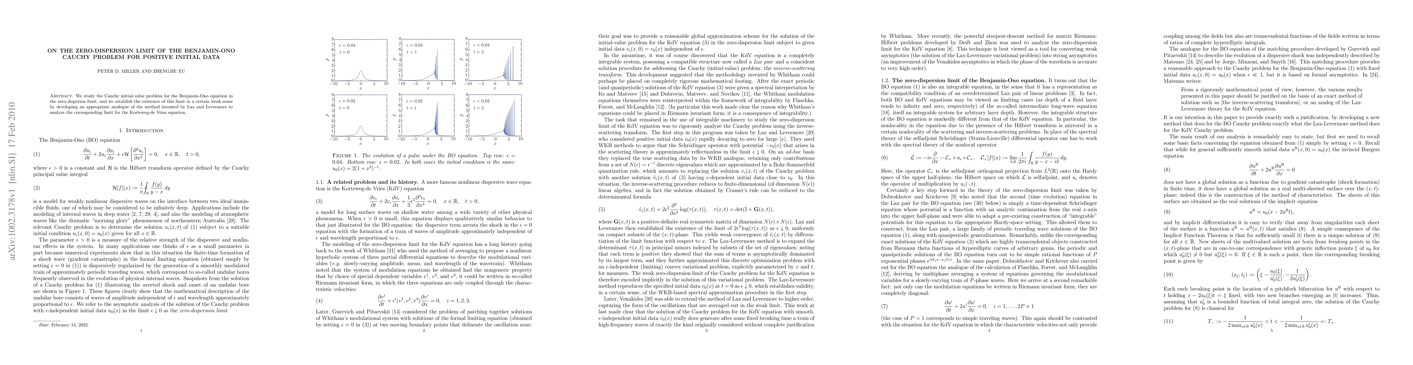 This paper investigates the zero-dispersion limit of the Benjamin-Ono equation's Cauchy problem for positive initial data, establishing the existence of this limit in a weak sense through a method analogous to Lax and Levermore's approach for the Korteweg-de Vries equation.