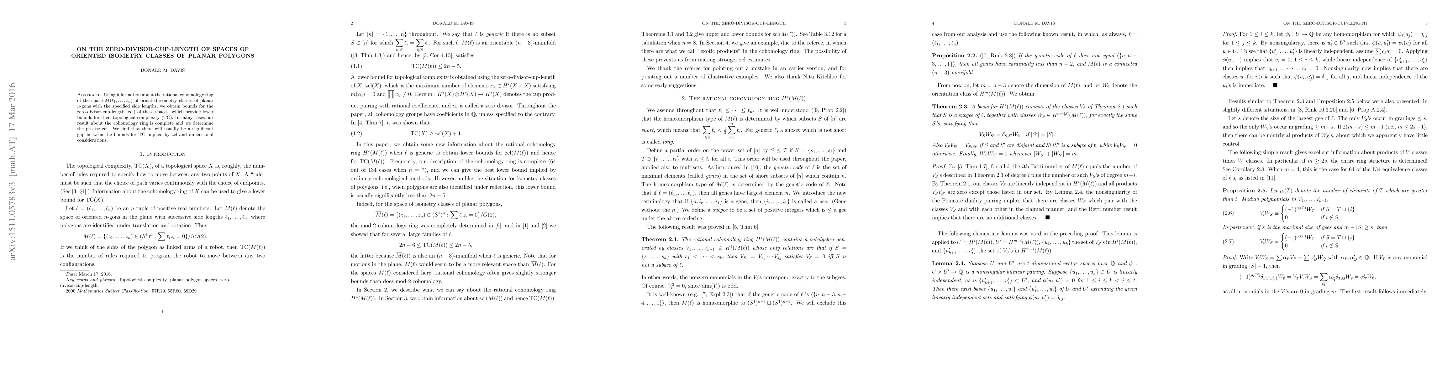 This paper provides bounds for the zero-divisor-cup-length (zcl) of spaces of oriented isometry classes of planar polygons, using their rational cohomology ring. The results often determine the precise zcl, revealing a significant gap between zcl-based and dimensional bounds for topological complexity (TC).