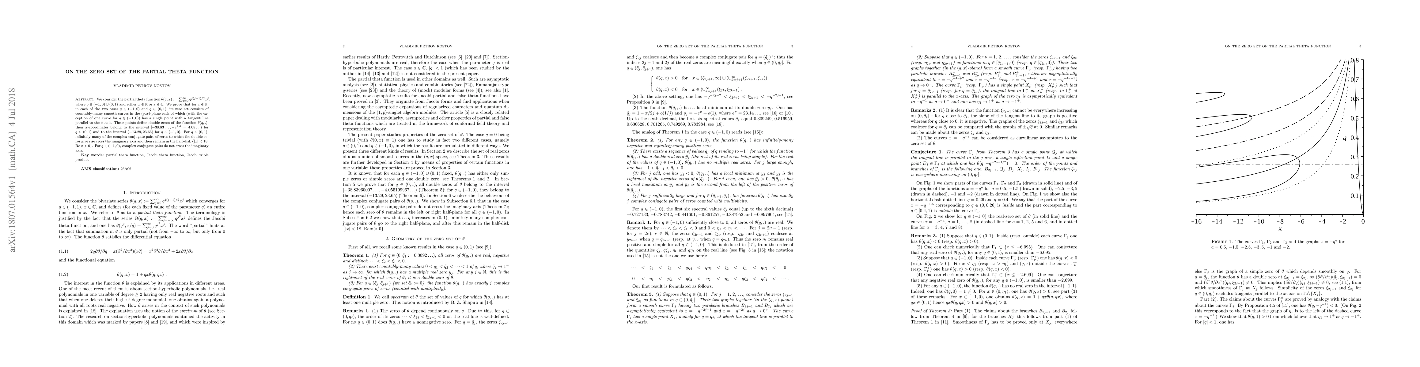 The research paper investigates the zero set of the partial theta function, finding that it consists of countably-many smooth curves in the (q,x)-plane with specific properties, including double zeros that cross the imaginary axis for q in (0,1) but not for q in (-1,0).