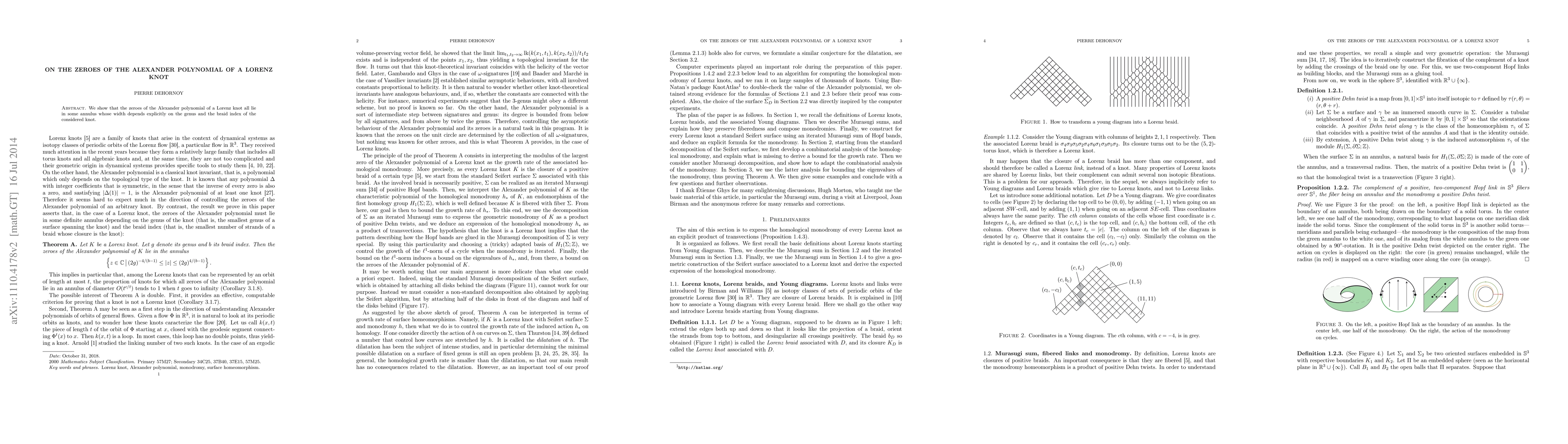 We show that the zeroes of the Alexander polynomial of a Lorenz knot all lie in some annulus whose width depends explicitly on the genus and the braid index of the considered knot.