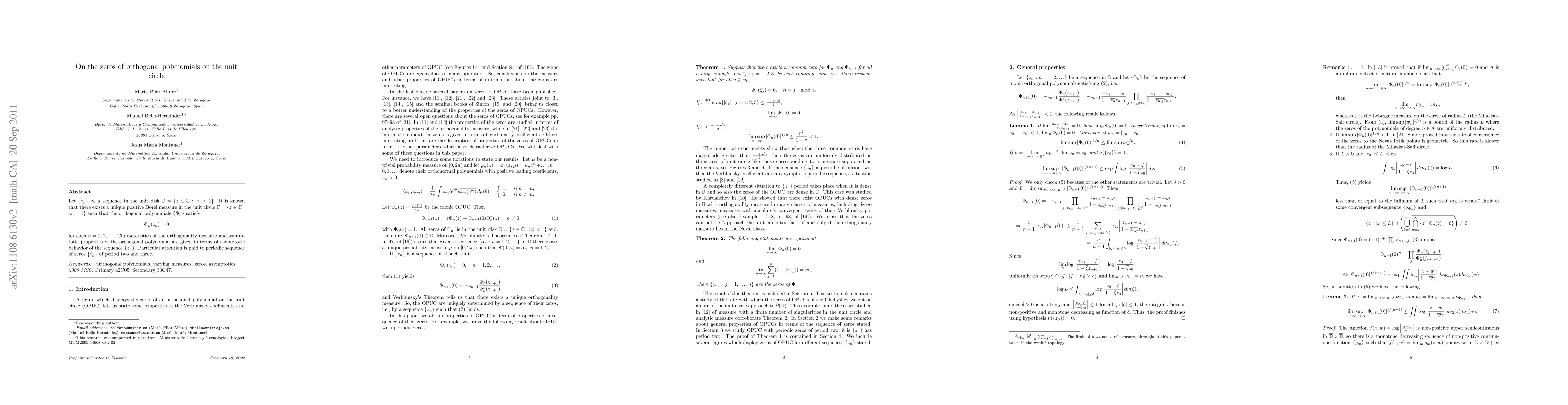 This paper investigates the unique positive Borel measure associated with orthogonal polynomials on the unit circle, focusing on the zeros of these polynomials within the unit disk. It examines the asymptotic properties of the polynomials and their zeros, with special emphasis on periodic sequences of zeros with periods two and three.