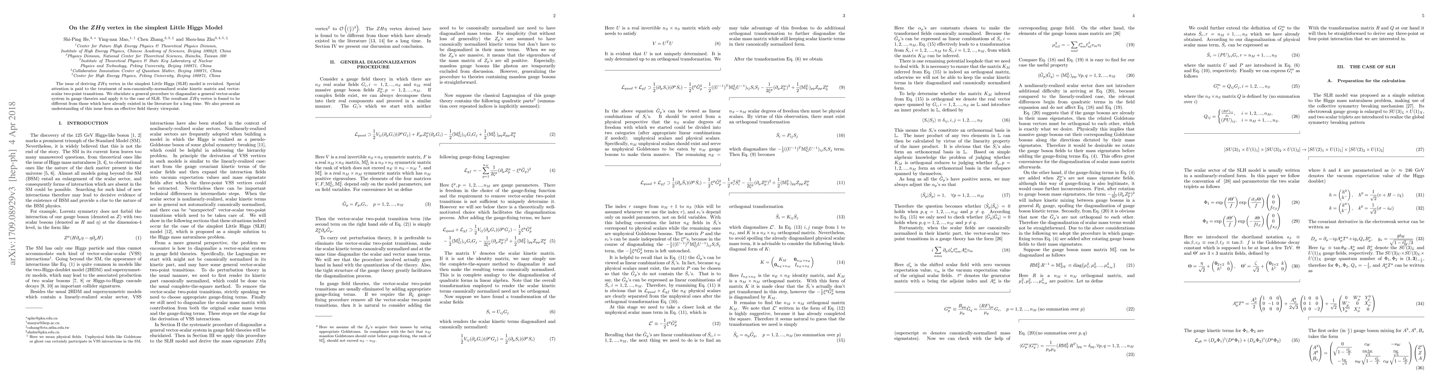 The issue of deriving $ZH\eta$ vertex in the simplest Little Higgs (SLH) model is revisited. Special attention is paid to the treatment of non-canonically-normalized scalar kinetic matrix and vector-scalar two-point transitions. We elucidate a general procedure to diagonalize a general vector-scalar system in gauge theories and apply it to the case of SLH. The resultant $ZH\eta$ vertex is found to be different from those which have already existed in the literature for a long time. We also present an understanding of this issue from an effective field theory viewpoint.