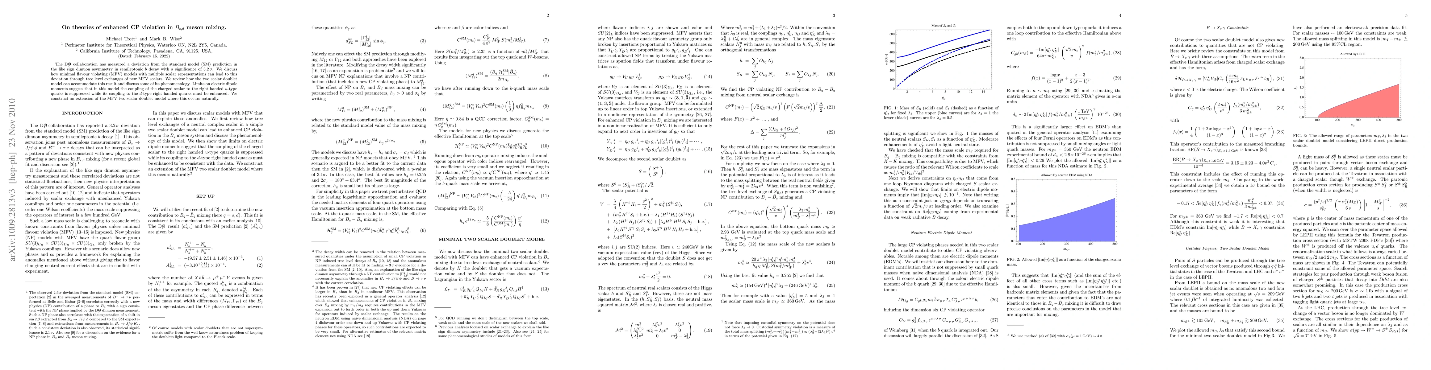 The DO collaboration has measured a deviation from the standard model (SM) prediction in the like sign dimuon asymmetry in semileptonic b decay with a significance of 3.2 sigma. We discuss how minimal flavour violating (MFV) models with multiple scalar representations can lead to this deviation through tree level exchanges of new MFV scalars. We review how the two scalar doublet model can accommodate this result and discuss some of its phenomenology. Limits on electric dipole moments suggest that in this model the coupling of the charged scalar to the right handed u-type quarks is suppressed while its coupling to the d-type right handed quarks must be enhanced. We construct an extension of the MFV two scalar doublet model where this occurs naturally.