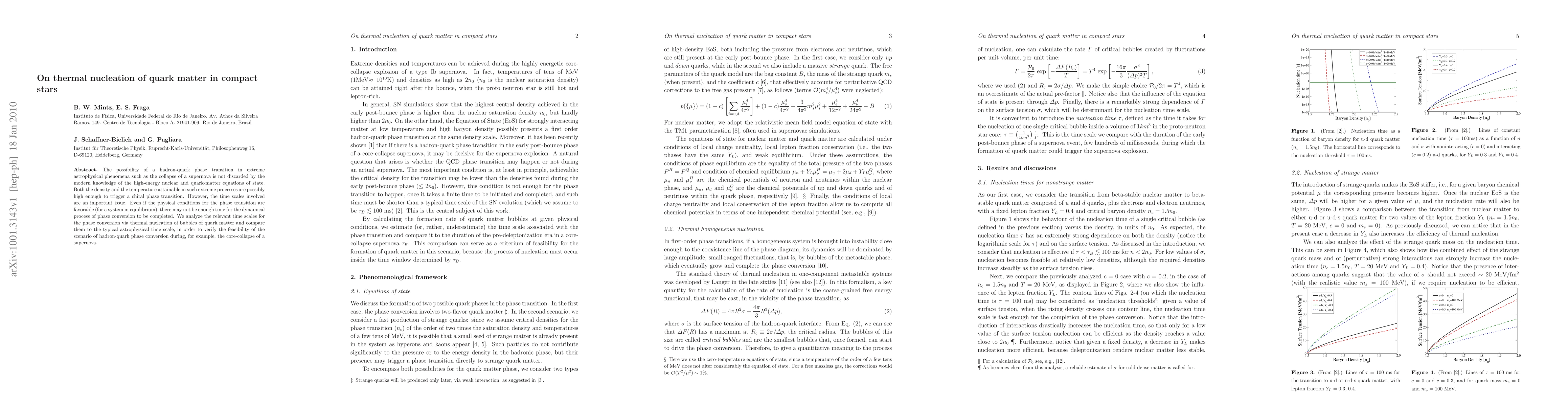 Researchers investigate whether a phase transition from hadron to quark matter can occur in compact stars due to thermal nucleation, considering the feasibility of such a process in supernova core collapse.