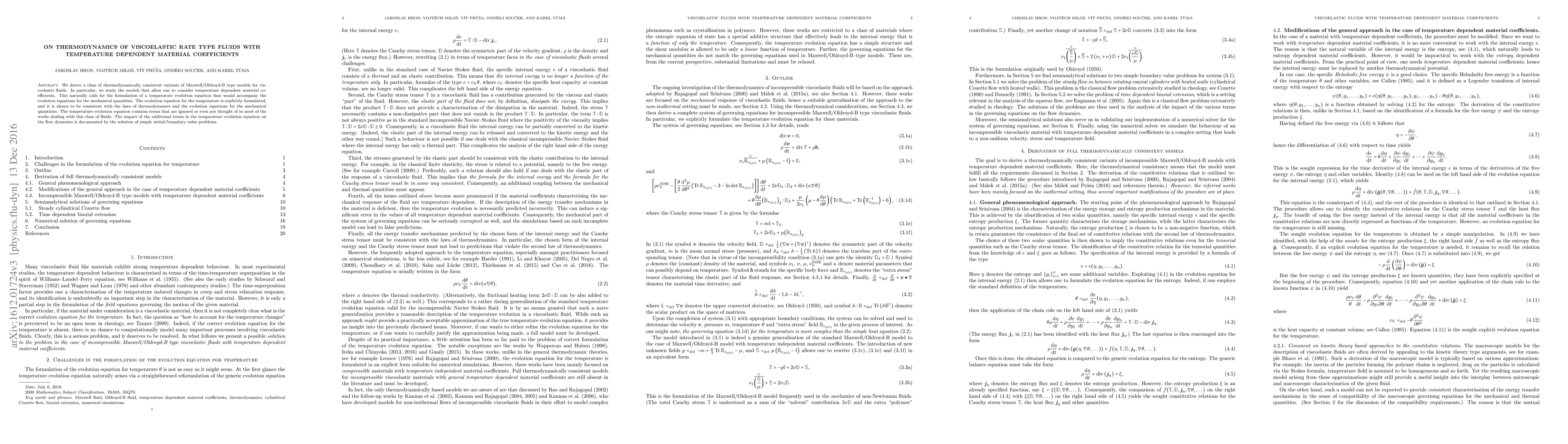 This paper develops thermodynamically consistent models for viscoelastic fluids, incorporating temperature-dependent material coefficients. It formulates a temperature evolution equation consistent with thermodynamic laws and mechanical evolution equations, highlighting the impact of additional terms on flow dynamics through simple problem solutions.