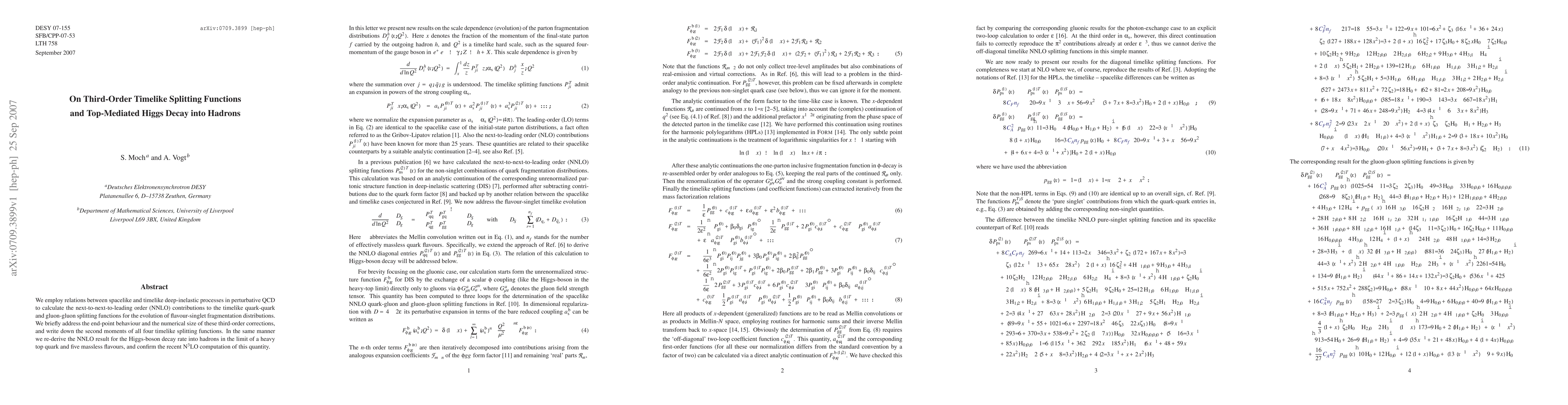 We employ relations between spacelike and timelike deep-inelastic processes in perturbative QCD to calculate the next-to-next-to-leading order (NNLO) contributions to the timelike quark-quark and gluon-gluon splitting functions for the evolution of flavour-singlet fragmentation distributions. We briefly address the end-point behaviour and the numerical size of these third-order corrections, and write down the second moments of all four timelike splitting functions. In the same manner we re-derive the NNLO result for the Higgs-boson decay rate into hadrons in the limit of a heavy top quark and five massless flavours, and confirm the recent N^3LO computation of this quantity.
