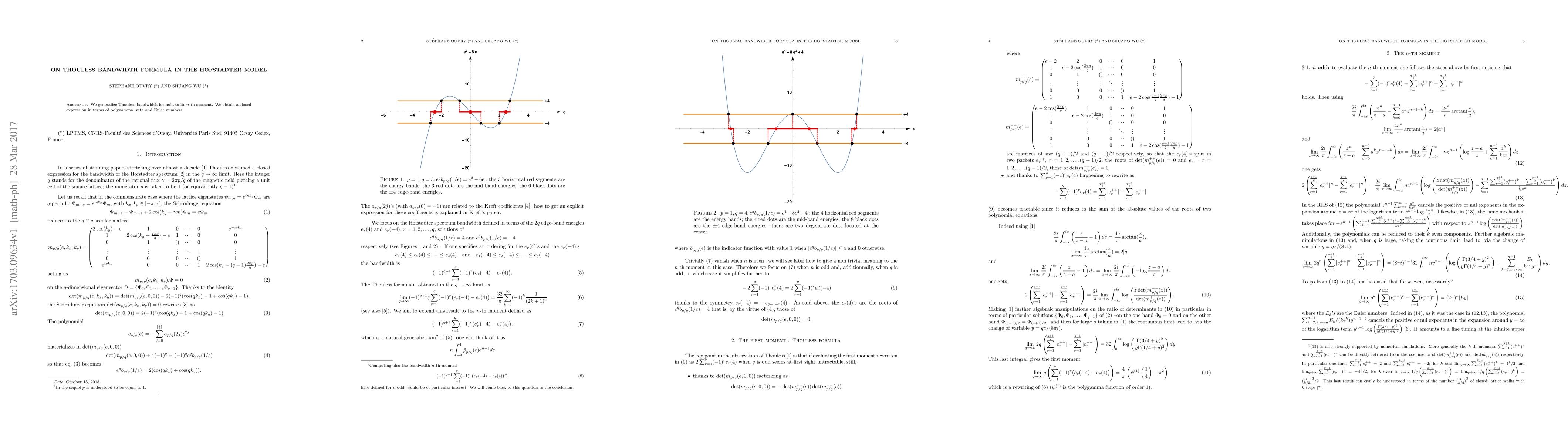 This research generalizes the Thouless bandwidth formula to its n-th moment, deriving a closed expression involving polygamma, zeta, and Euler numbers.