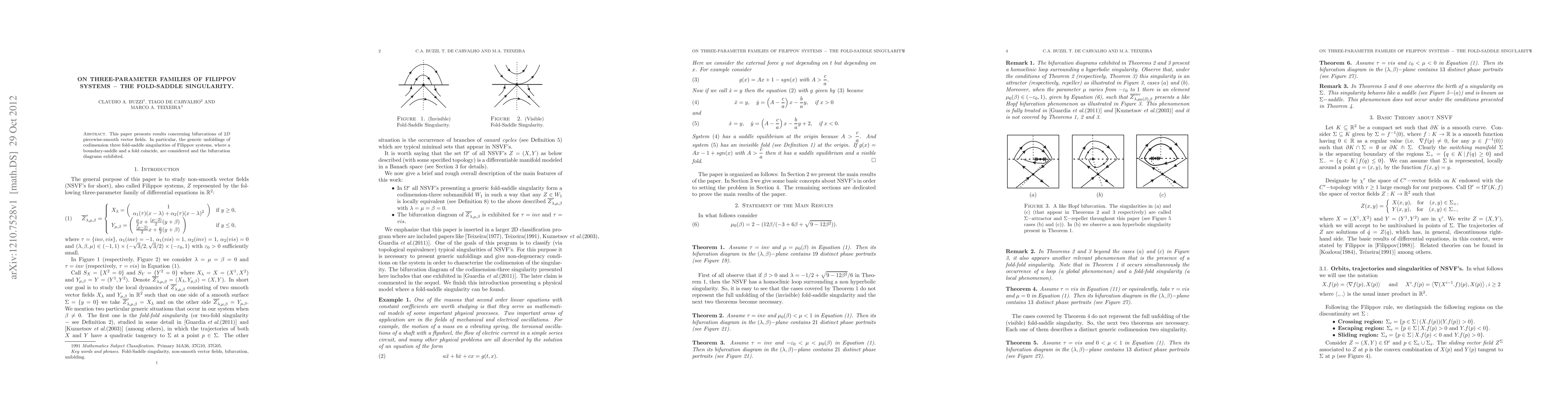 This paper investigates bifurcations in 2D piecewise-smooth vector fields, focusing on codimension three fold-saddle singularities in Filippov systems and illustrating their generic unfoldings with bifurcation diagrams.