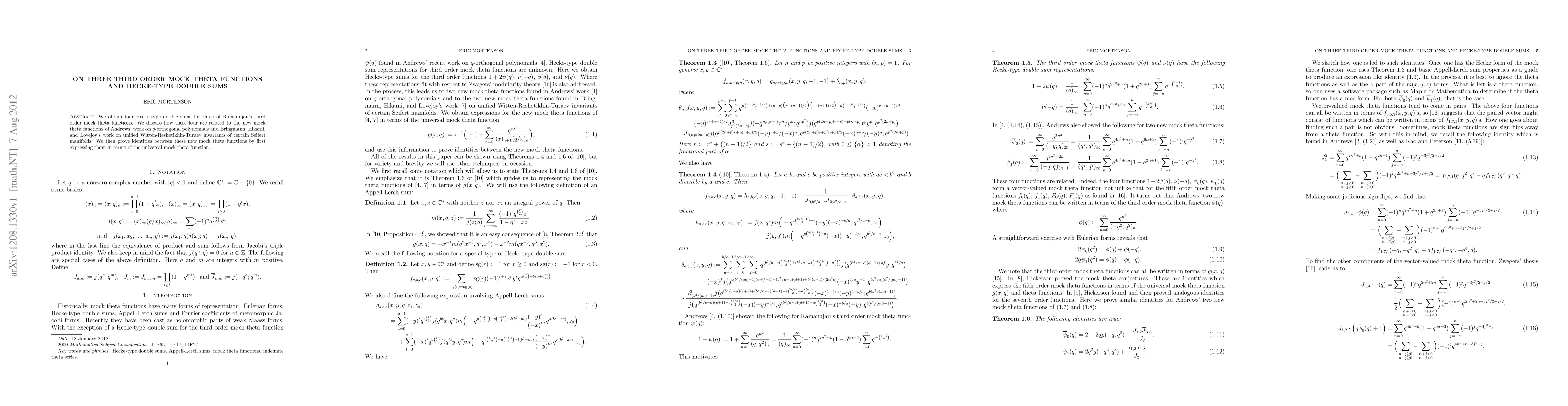 This paper derives four Hecke-type double sums associated with three of Ramanujan's third order mock theta functions, linking them to Andrews' new mock theta functions and to invariant studies by Bringmann, Hikami, and Lovejoy. Identities among these new mock theta functions are established by expressing them via the universal mock theta function.
