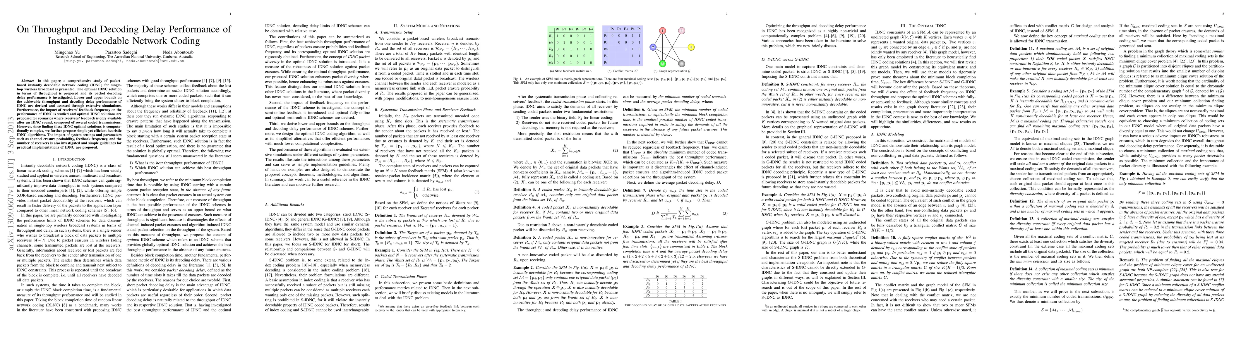 This paper investigates the throughput and decoding delay of instantly decodable network coding (IDNC) in single-hop wireless broadcast. It proposes optimal IDNC solutions and heuristic algorithms, and provides guidelines for practical implementations based on system parameters like feedback frequency and channel conditions.