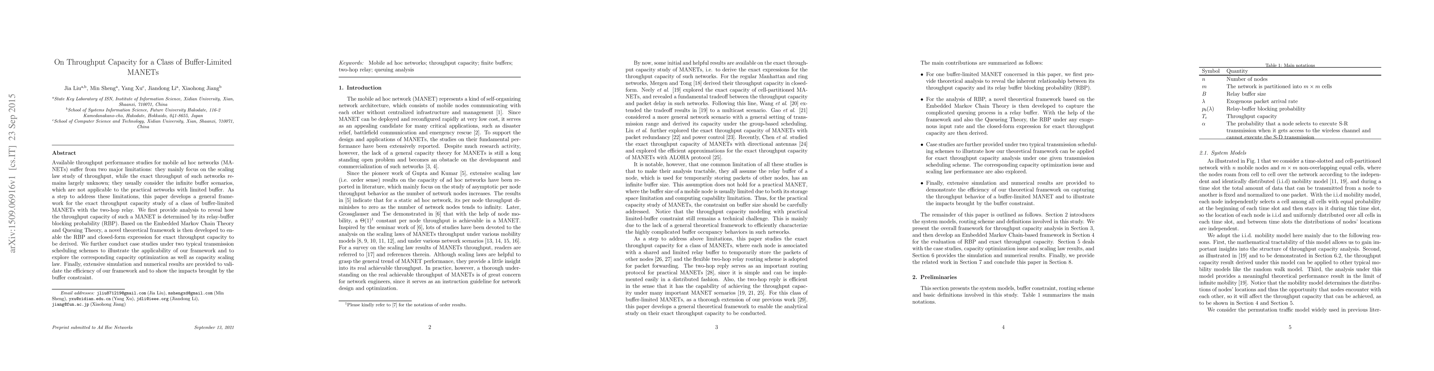 This research addresses the limitations of existing throughput performance studies in MANETs by focusing on exact throughput capacity in buffer-limited scenarios, which is crucial for practical networks with limited buffer.
