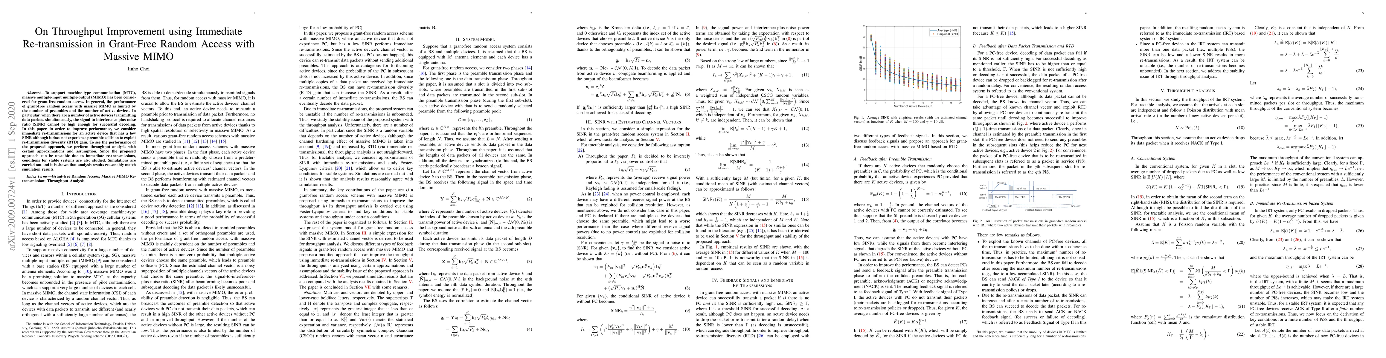 This paper proposes immediate re-transmissions in grant-free random access with massive MIMO to improve throughput by exploiting re-transmission diversity, despite potential instability. Simulation results confirm the effectiveness of the approach.