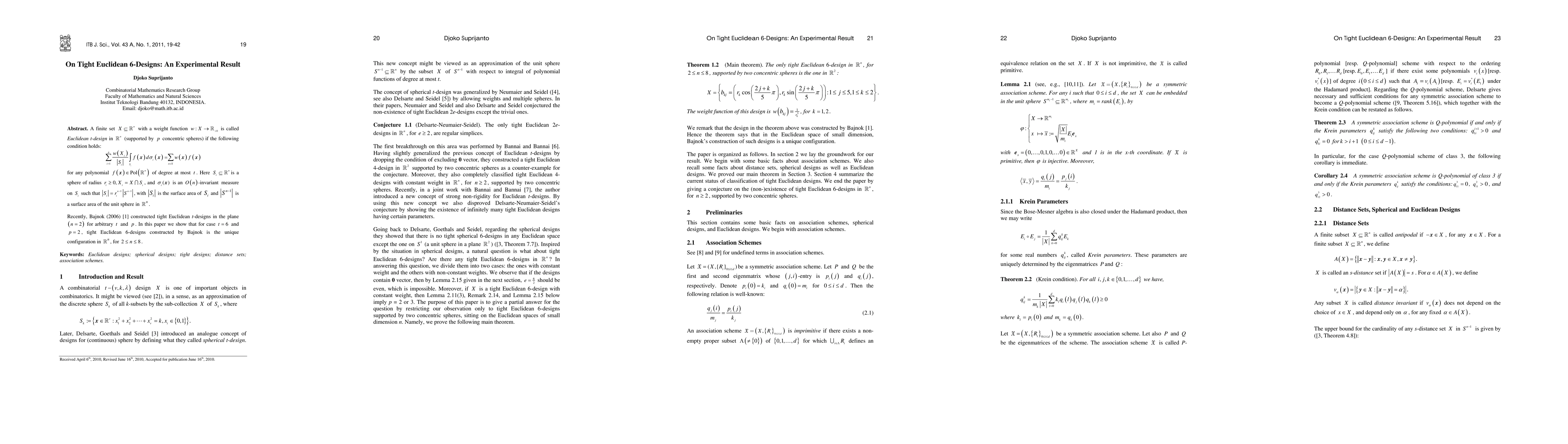 This paper investigates the uniqueness of tight Euclidean $6$-designs constructed by Bajnok for $t=6$ and $p=2$ in dimensions $2 \leq n \leq 8$. It concludes that Bajnok's construction is the only such configuration in these dimensions.