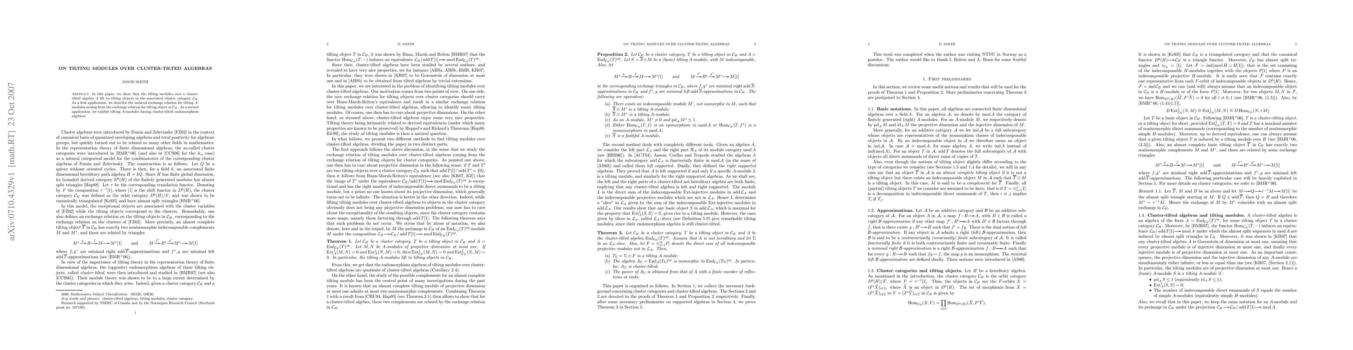 This paper demonstrates that tilting modules over a cluster-tilted algebra $A$ correspond to tilting objects in the associated cluster category $\mathcal{C}_H$, and it explores applications including an induced exchange relation and the existence of tilting modules with cluster-tilted endomorphism algebras.