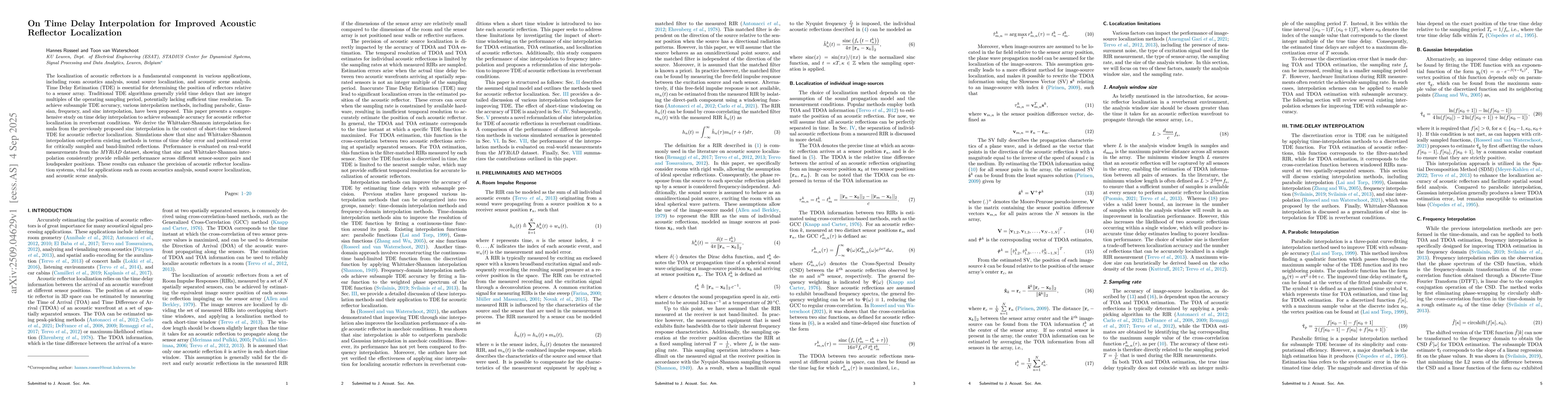 The localization of acoustic reflectors is a fundamental component in various applications, including room acoustics analysis, sound source localization, and acoustic scene analysis. Time Delay Estimation (TDE) is essential for determining the position of reflectors relative to a sensor array. Traditional TDE algorithms generally yield time delays that are integer multiples of the operating sampling period, potentially lacking sufficient time resolution. To achieve subsample TDE accuracy, various interpolation methods, including parabolic, Gaussian, frequency, and sinc interpolation, have been proposed. This paper presents a comprehensive study on time delay interpolation to achieve subsample accuracy for acoustic reflector localization in reverberant conditions. We derive the Whittaker-Shannon interpolation formula from the previously proposed sinc interpolation in the context of short-time windowed TDE for acoustic reflector localization. Simulations show that sinc and Whittaker-Shannon interpolation outperform existing methods in terms of time delay error and positional error for critically sampled and band-limited reflections. Performance is evaluated on real-world measurements from the MYRiAD dataset, showing that sinc and Whittaker-Shannon interpolation consistently provide reliable performance across different sensor-source pairs and loudspeaker positions. These results can enhance the precision of acoustic reflector localization systems, vital for applications such as room acoustics analysis, sound source localization, and acoustic scene analysis.