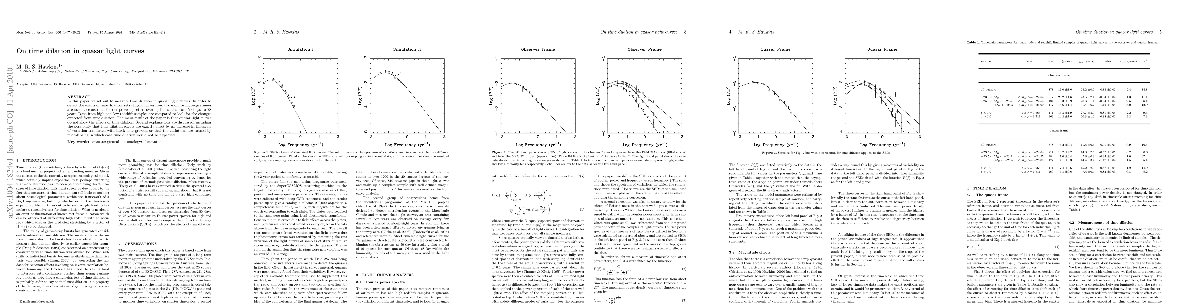 This paper investigates time dilation effects in quasar light curves using Fourier power spectra from monitoring programs. The study finds no evidence of time dilation, suggesting that potential effects may be offset by black hole growth or that microlensing could be the cause of variations instead.