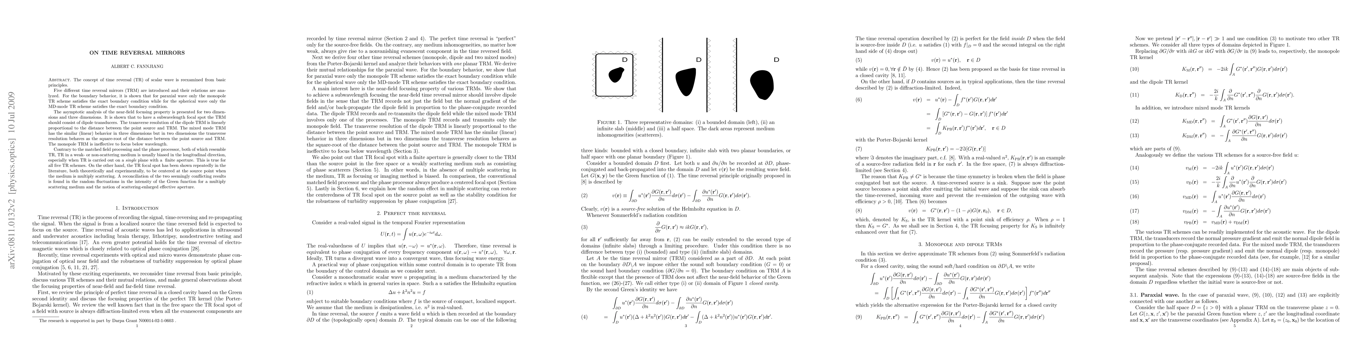 This paper reexamines time reversal mirrors (TRM) for scalar wave, introducing five different TRM schemes and analyzing their boundary behavior. It finds that only specific TR schemes satisfy exact boundary conditions for paraxial and spherical waves, and that dipole fields are necessary for subwavelength focusing. The study reconciles conflicting results on TR focal spots in scattering media by considering random fluctuations and effective scattering apertures.