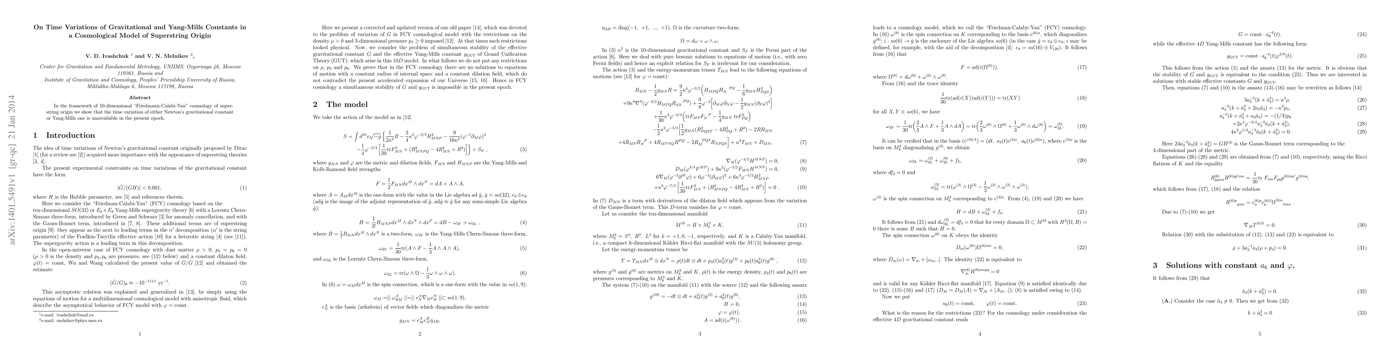 This paper explores a 10-dimensional cosmological model derived from superstring theory, demonstrating that the time variation of either Newton's gravitational constant or the Yang-Mills constant is inevitable in the current cosmological epoch. The study highlights the dynamic nature of fundamental constants in the context of superstring cosmology.