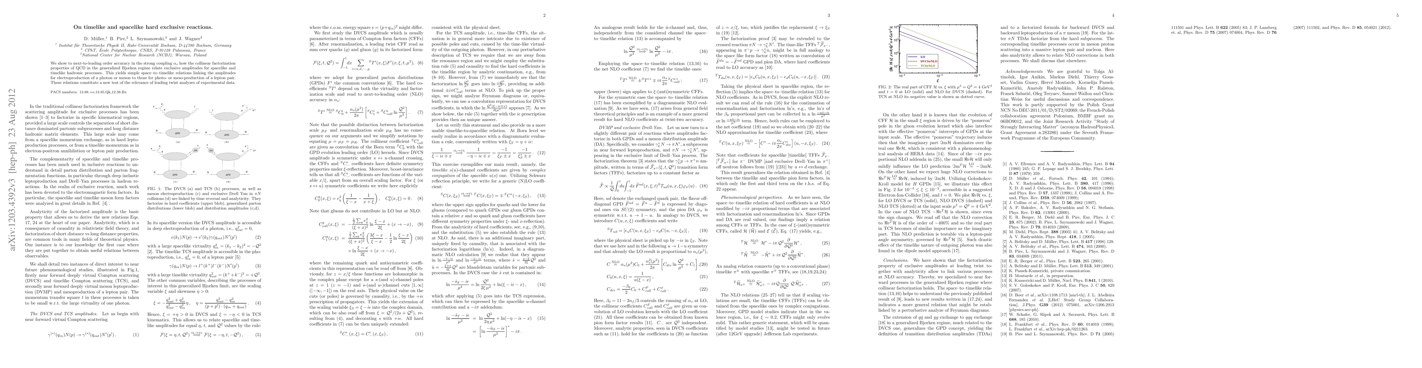 This paper demonstrates next-to-leading order QCD factorization properties in the generalized Bjorken regime, establishing simple relations between spacelike and timelike exclusive amplitudes. These findings provide a new test for leading twist analyses in experimental data.