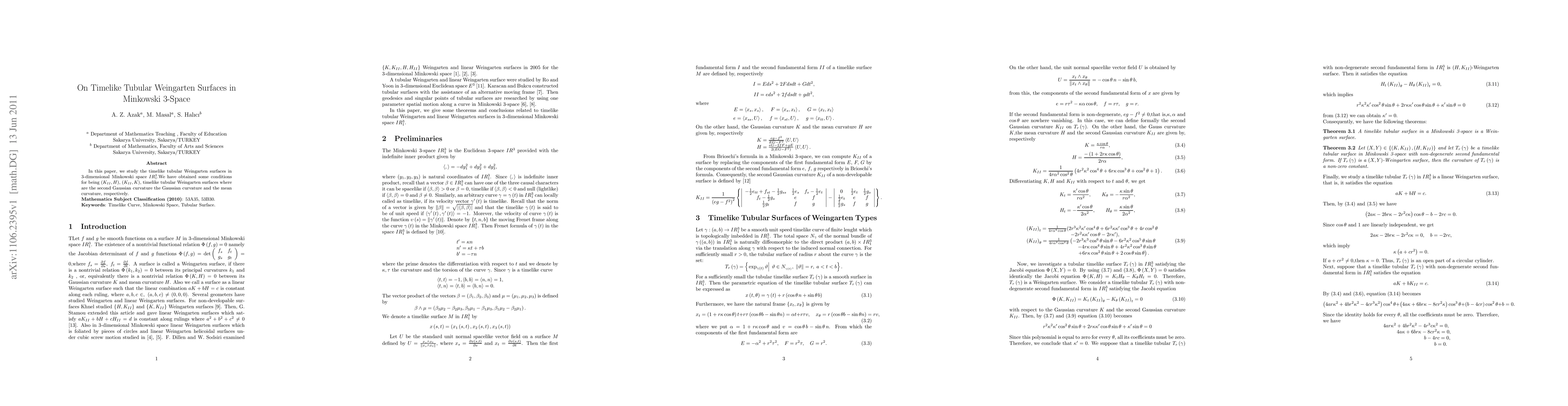 Summary: This paper investigates timelike tubular Weingarten surfaces in 3-dimensional Minkowski space, establishing conditions for them to exhibit specific curvature properties, namely as $({K_{II},H})$ and $({K_{II},K})$ configurations, involving the second Gaussian curvature, Gaussian curvature, and mean curvature.