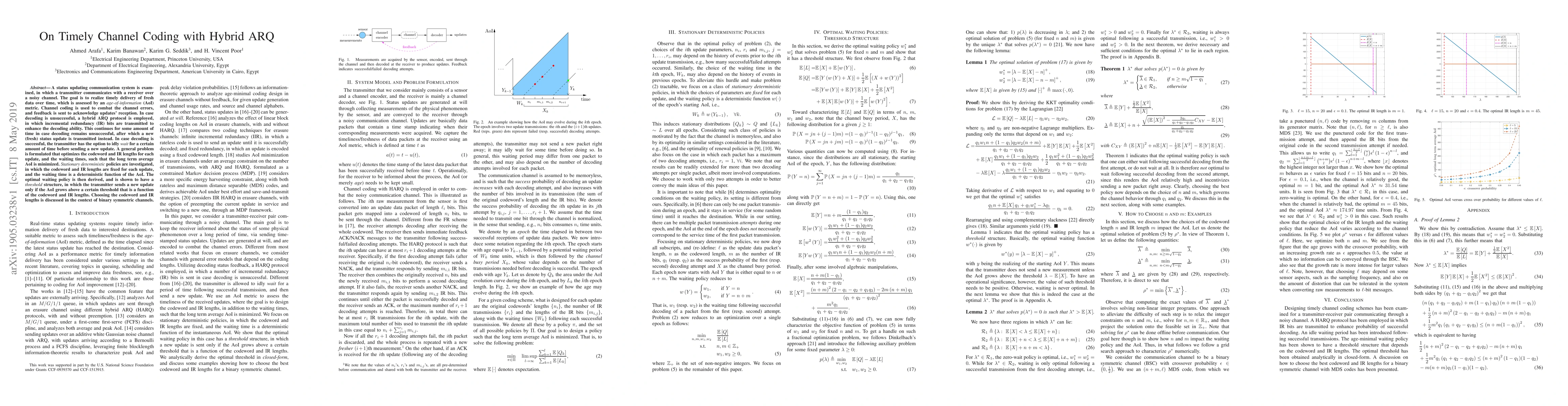 A status updating communication system is examined, in which a transmitter communicates with a receiver over a noisy channel. The goal is to realize timely delivery of fresh data over time, which is assessed by an age-of-information (AoI) metric. Channel coding is used to combat the channel errors, and feedback is sent to acknowledge updates' reception. In case decoding is unsuccessful, a hybrid ARQ protocol is employed, in which incremental redundancy (IR) bits are transmitted to enhance the decoding ability. This continues for some amount of time in case decoding remains unsuccessful, after which a new (fresh) status update is transmitted instead. In case decoding is successful, the transmitter has the option to idly wait for a certain amount of time before sending a new update. A general problem is formulated that optimizes the codeword and IR lengths for each update, and the waiting times, such that the long term average AoI is minimized. Stationary deterministic policies are investigated, in which the codeword and IR lengths are fixed for each update, and the waiting time is a deterministic function of the AoI. The optimal waiting policy is then derived, and is shown to have a threshold structure, in which the transmitter sends a new update only if the AoI grows above a certain threshold that is a function of the codeword and IR lengths. Choosing the codeword and IR lengths is discussed in the context of binary symmetric channels.