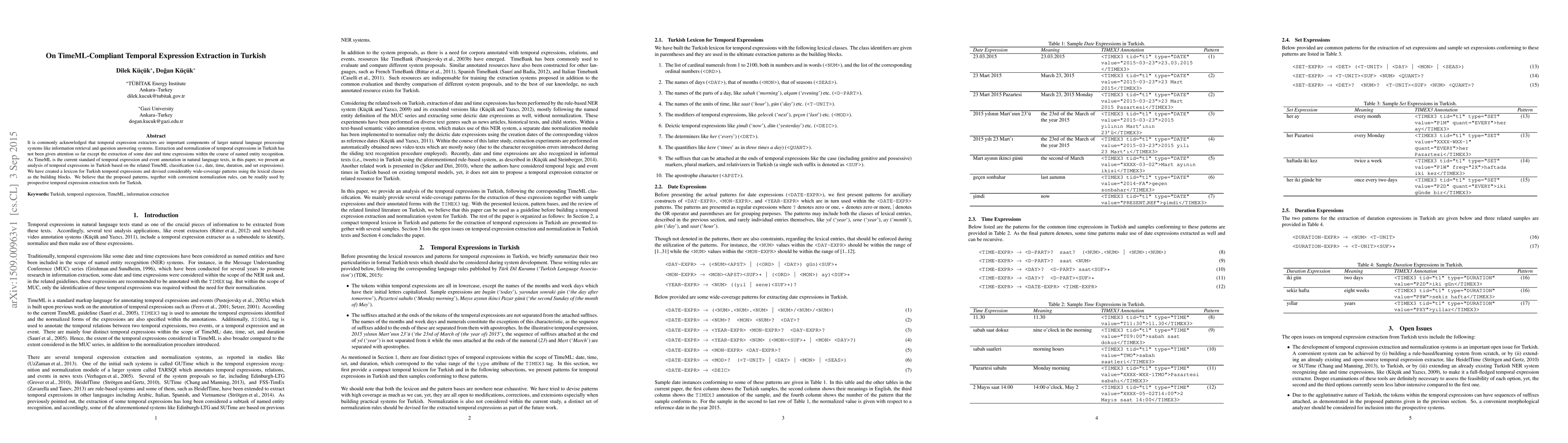 A new lexicon for Turkish temporal expressions was created to aid in TimeML-compliant extraction, using wide-coverage patterns that can be used by tools.