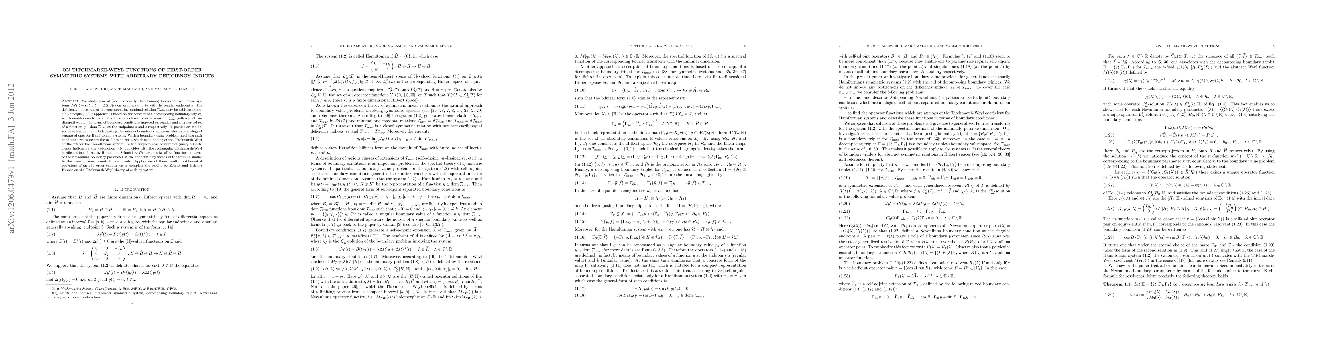 Researchers developed a new framework to study Titchmarsh-Weyl functions for first-order symmetric systems with arbitrary deficiency indices, enabling the parametrization of self-adjoint and dissipative extensions in terms of boundary conditions.