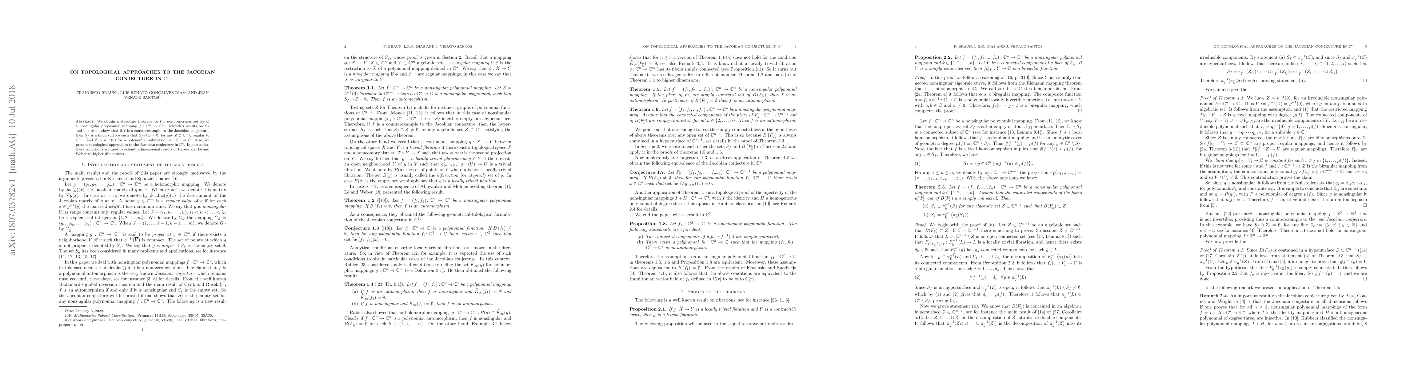 We obtain a structure theorem for the nonproperness set $S_f$ of a nonsingular polynomial mapping $f:\mathbb{C}^n \to \mathbb{C}^n$. Jelonek's results on $S_f$ and our result show that if $f$ is a counterexample to the Jacobian conjecture, then $S_f$ is a hypersurface such that $S_f\cap Z \neq \emptyset$, for any $Z\subset \mathbb{C}^n$ biregular to $\mathbb{C}^{n-1}$ and $Z = h^{-1}(0)$ for a polynomial submersion $h: \mathbb{C}^n \to \mathbb{C}$. Also, we present topological approaches to the Jacobian conjecture in $\mathbb{C}^n$.