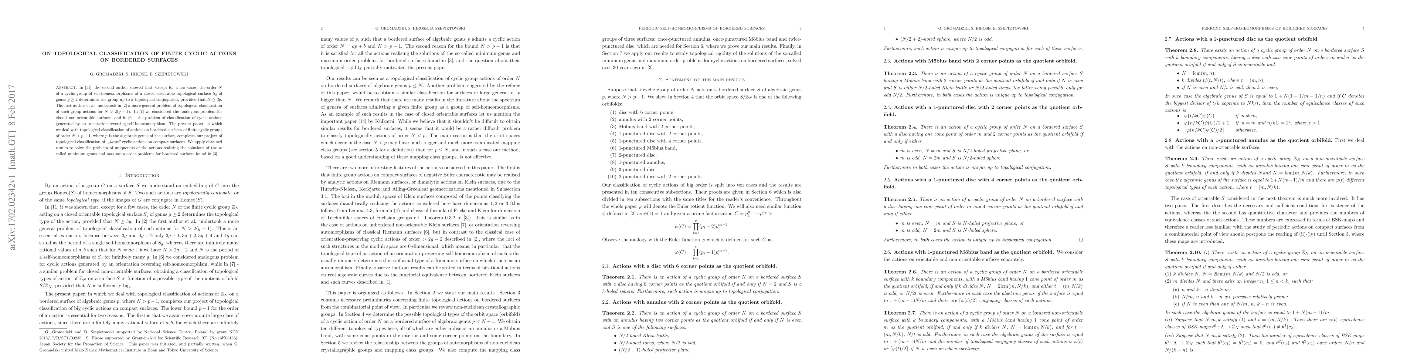 This paper completes the topological classification of finite cyclic group actions on bordered surfaces, extending previous work on closed surfaces. It focuses on actions with order $N>p-1$, where $p$ is the algebraic genus, and resolves the uniqueness of actions realizing minimum genus and maximum order solutions.