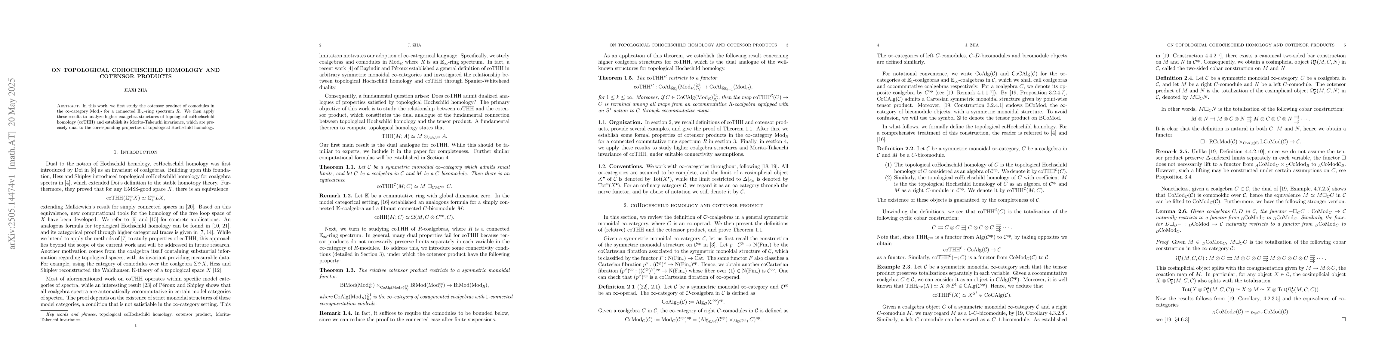The research explores the cotensor product of comodules in the ∞-category Mod_R for a connected E∞-ring spectrum R, applying results to analyze higher coalgebra structures of topological coHochschild homology (coTHH) and establish its Morita-Takeuchi invariance.