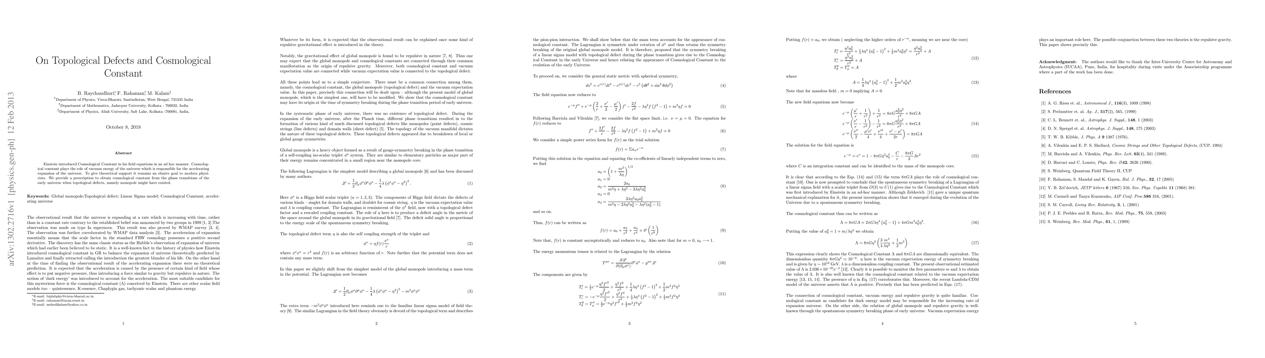 This paper proposes a theoretical framework to derive the cosmological constant from topological defects, specifically monopoles, emerging during phase transitions in the early universe, addressing the elusive nature of vacuum energy and its role in cosmic expansion.
