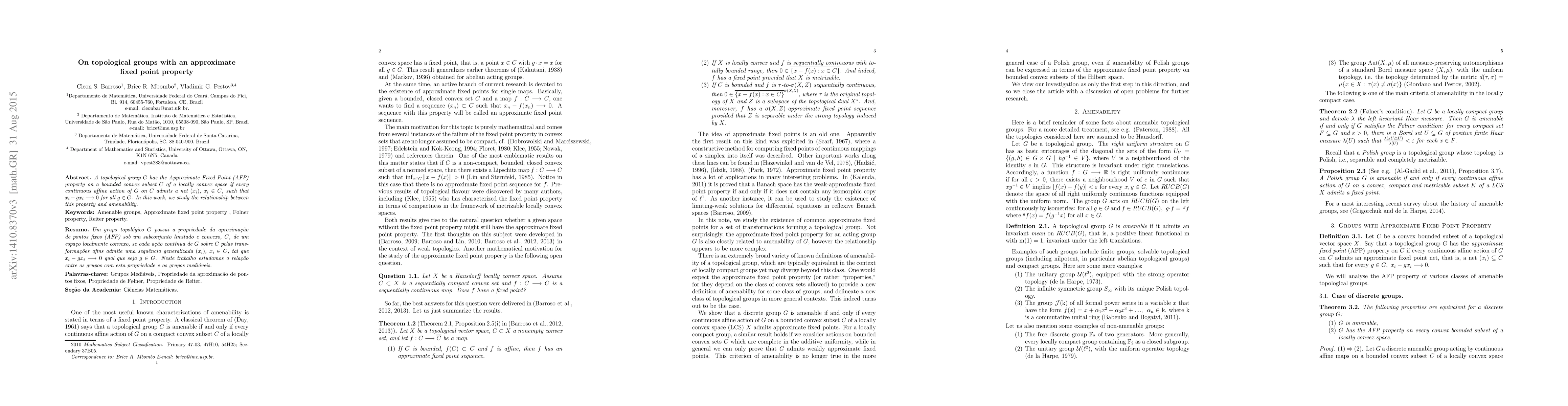 This paper investigates topological groups possessing the Approximate Fixed Point (AFP) property on bounded convex subsets of locally convex spaces and explores its connection with the group's amenability. The study aims to understand how the AFP property influences the group's structure and behavior.