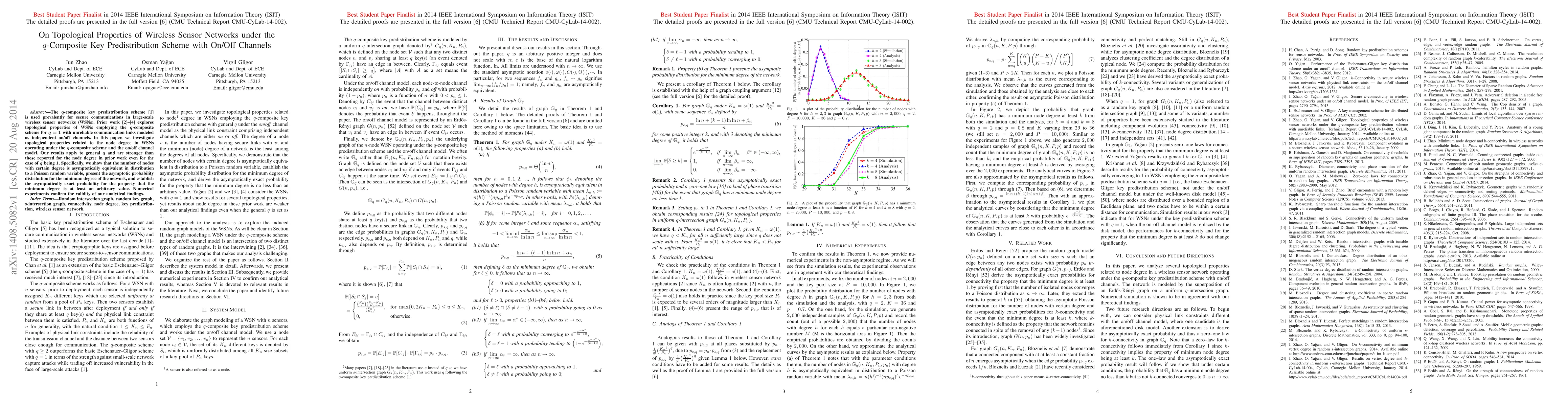 This paper investigates the topological properties of wireless sensor networks (WSNs) under the q-composite key predistribution scheme with on/off channels, showing that node degree distributions asymptotically converge to a Poisson distribution. Analytical results are validated through numerical experiments, providing stronger findings than previous studies.