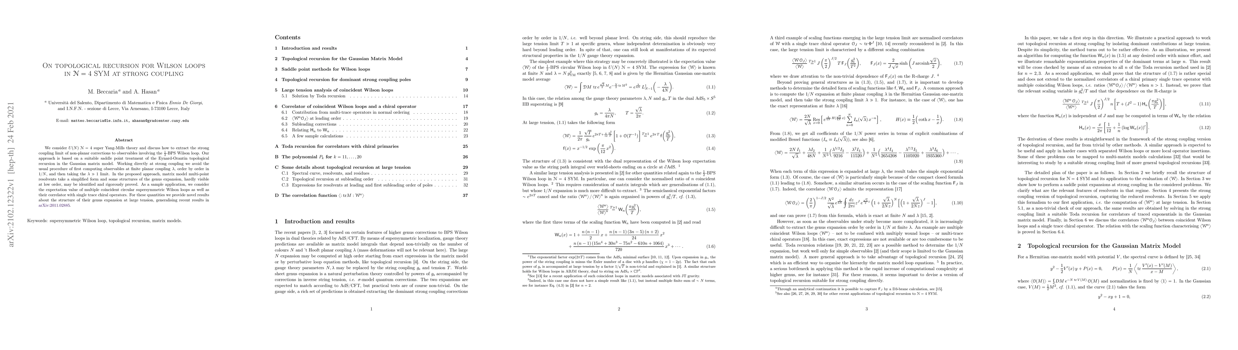 This paper explores the strong coupling limit of non-planar corrections in $\mathcal N=4$ super Yang-Mills theory using topological recursion and Gaussian matrix models, providing simplified matrix model resolvents and new insights into the genus expansion for Wilson loops and their correlators.