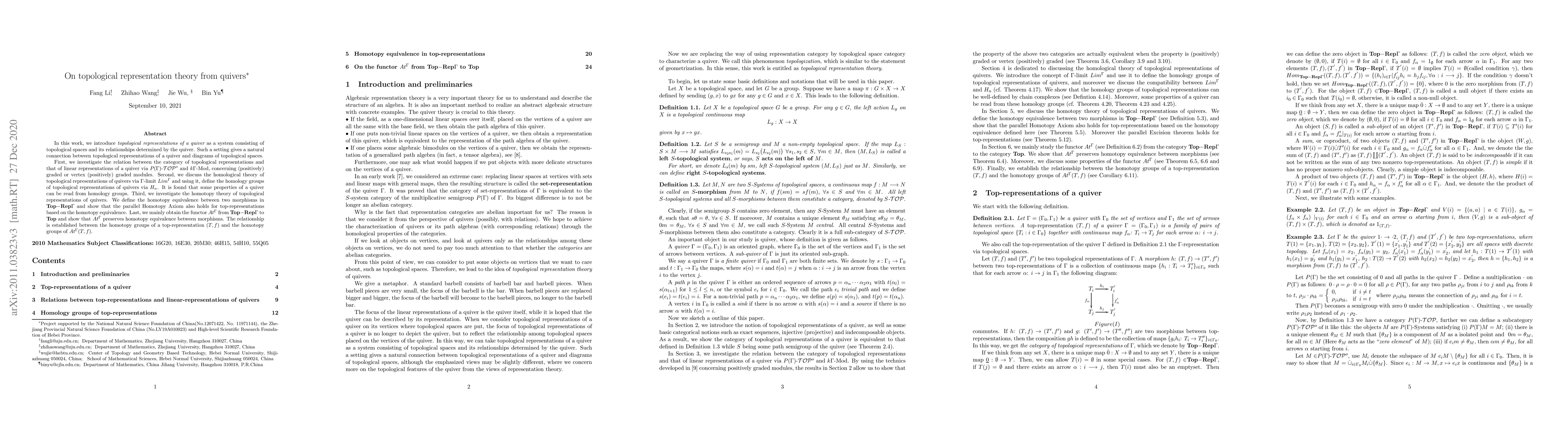 This paper introduces topological representations of a quiver, linking them to diagrams of topological spaces and investigating their connections to linear representations. It develops a homological theory and explores homotopy theory, demonstrating the preservation of homotopy equivalence under a functor.