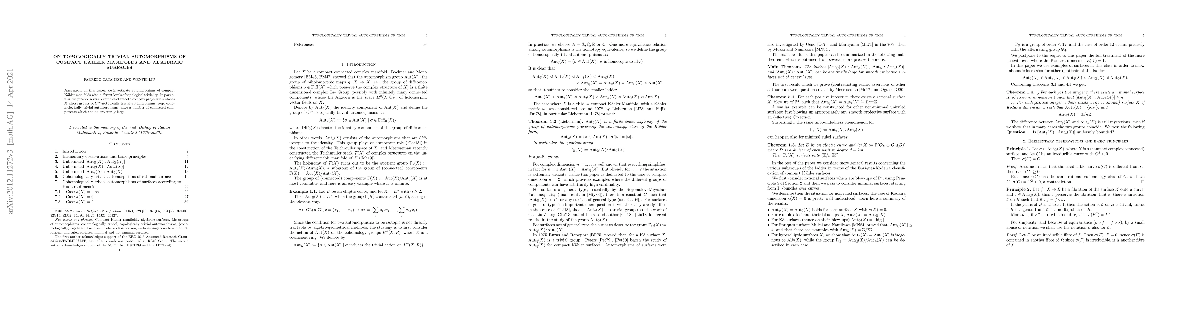 This paper explores automorphisms of compact Kähler manifolds, focusing on those that are topologically trivial. It provides examples of smooth complex projective surfaces with automorphism groups that have a large number of connected components, illustrating varying levels of topological triviality.