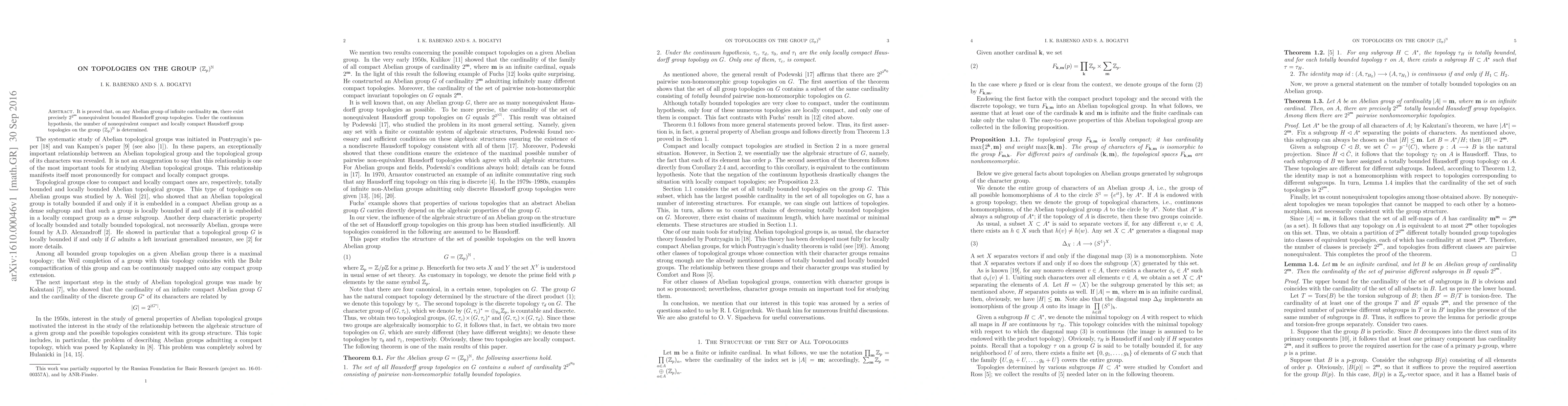 It is proved that, on any Abelian group of infinite cardinality ${\bf m}$, there exist precisely $2^{2^{\bf m}}$ nonequivalent bounded Hausdorff group topologies. Under the continuum hypothesis, the number of nonequivalent compact and locally compact Hausdorff group topologies on the group $(\Z_p)^{\N}$ is determined.