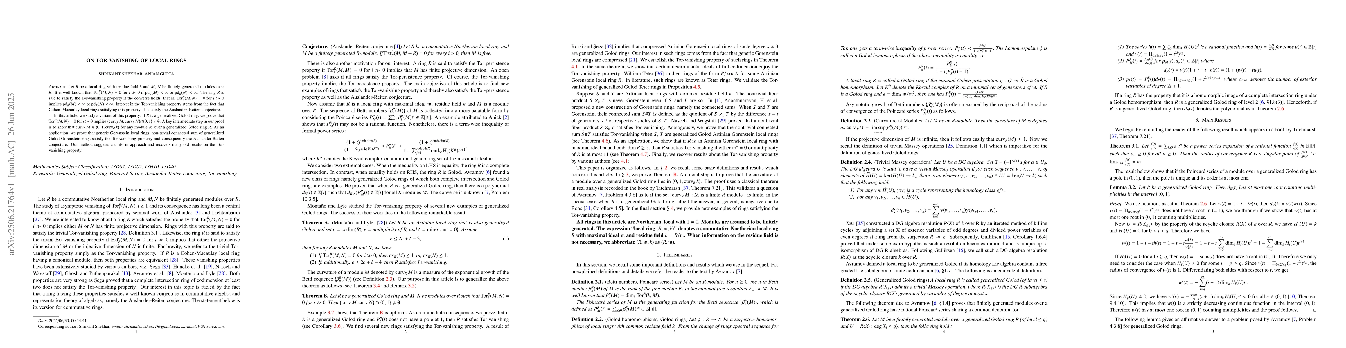 Let $R$ be a local ring with residue field $k$ and $M$, $N$ be finitely generated modules over $R$. It is well known that $Tor^R_i(M, N) = 0$ for $i \gg 0$ if $pd_R(M) < \infty$ or $pd_R(N) < \infty$. The ring $R$ is said to satisfy the Tor-vanishing property if the converse holds, that is, $Tor^R_i(M, N) = 0$ for $i \gg 0$ implies $pd_R(M) < \infty$ or $pd_R(N) < \infty$. Interest in the Tor-vanishing property stems from the fact that Cohen-Macaulay local rings satisfying this property also satisfy the Auslander-Reiten conjecture. In this article, we study a variant of this property. If $R$ is a generalized Golod ring, we prove that $Tor^R_i(M, N) = 0$ for $i \gg 0$ implies $\{curv_R M, curv_R N \} \cap \{0, 1\} \neq \emptyset$. A key intermediate step in our proof is to show that $curv_R M \in \{0, 1, curv_R k\}$ for any module $M$ over a generalized Golod ring $R$. As an application, we prove that generic Gorenstein local rings, non-trivial connected sums of generalized Golod-Gorenstein rings satisfy the Tor-vanishing property and consequently the Auslander-Reiten conjecture. Our method suggests a uniform approach and recovers many old results on the Tor-vanishing property.