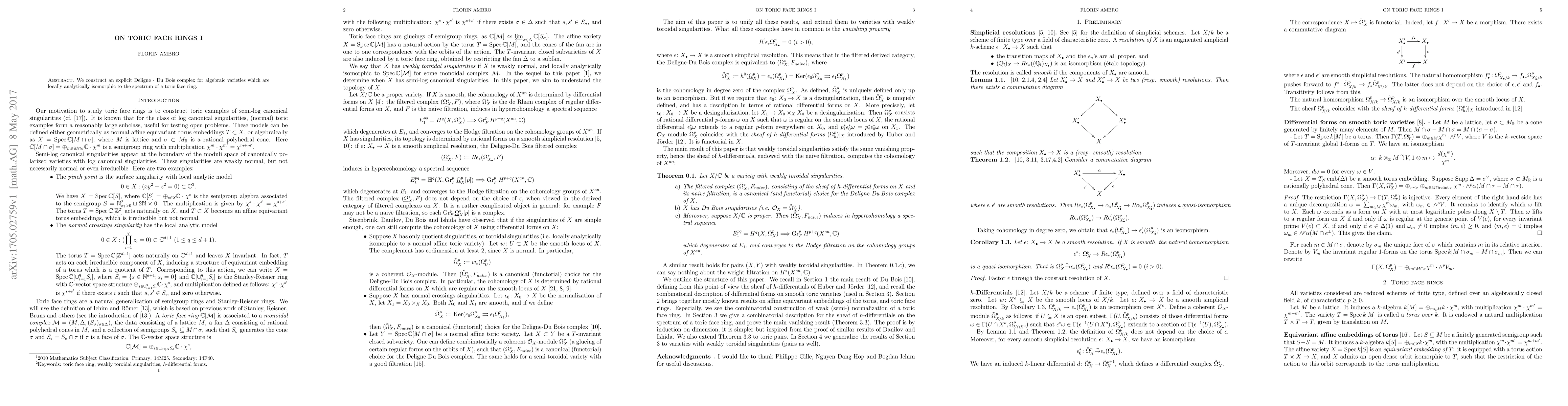 Summary: This paper introduces an explicit Deligne-Du Bois complex for algebraic varieties that are locally analytically isomorphic to toric face rings, providing a detailed construction and analysis of these complexes. The work highlights the connection between toric geometry and complex analytic structures.