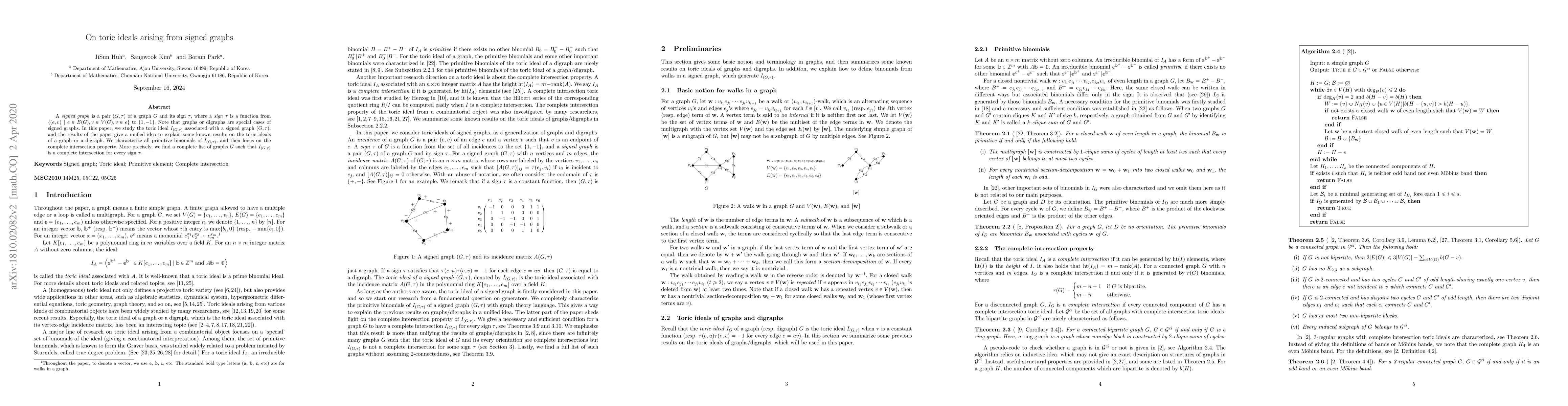 This paper explores toric ideals $I_{(G,\tau)}$ linked to signed graphs, providing a unified explanation for known results on toric ideals of graphs and digraphs. It characterizes primitive binomials of these ideals and identifies which graphs $G$ ensure $I_{(G,\tau)}$ is a complete intersection for any sign $\tau$.