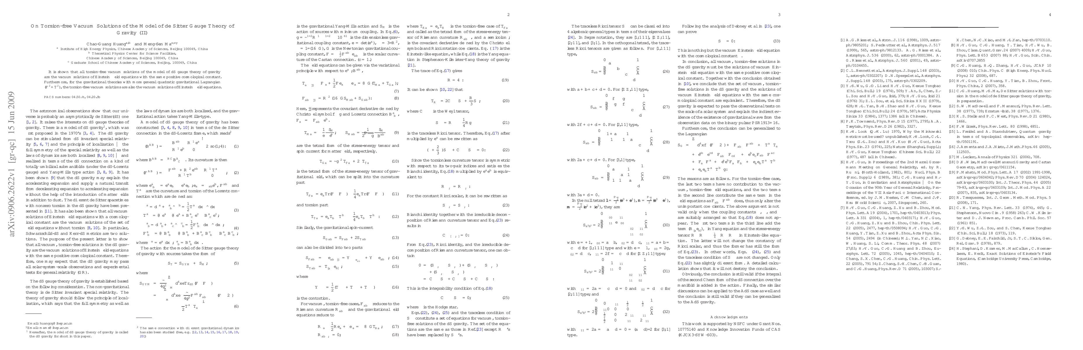 It is shown that all torsion-free vacuum solutions of the model of dS gauge theory of gravity are the vacuum solutions of Einstein field equations with the same positive cosmological constant. Furthermore, for the gravitational theories with more general quadratic gravitational Lagrangian ($F^2+T^2$), the torsion-free vacuum solutions are also the vacuum solutions of Einstein field equations.
